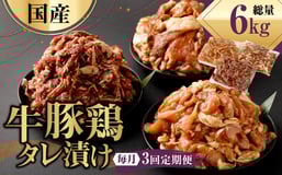 【3ヶ月定期便】 国産 牛豚鶏 タレ漬け 合計2kg ×3回 焼肉 小分け