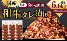 【3ヶ月定期便】 国産和牛 タレ漬け 合計2.2kg 550g×4袋 ×3回 総計6.6kg 牛肉 肉 小間切れ コマ切れ 炒め物 冷凍 たれ タレ 漬け 焼くだけ 簡単調理 定期便 3回 国産 熊本県 水俣市 焼肉 小分け