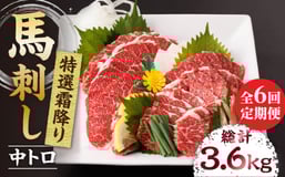 【6回定期便】特選霜降り馬刺し(中トロ)計600g(6pc)+タレ大 馬刺し 特選霜降り馬刺し 馬肉 桜肉 馬 肉 特選 霜降り 中トロ 便利 小分け 6パック タレ付き 冷凍 生食 肉食 刺身 九州 熊本県 特産品 山鹿 送料無料 【馬刺しの郷 民守】[ZBL071]
