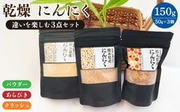 乾燥 にんにく パウダー あらびき クラッシュ 違いを楽しむ3点セット 3種 総量150g 熊本県 宇城市産 無添加ニンニク100%使用 ニンニク ガーリック パウダー 粉末 乾燥 調味料
