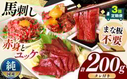 【 3回 定期便 】まな板不要 カット済み 希少な 純国産 馬刺し 赤身 と 桜ユッケ セット 約 200g タレ付き | 熊本県 熊本 くまもと 和水町 なごみ 馬肉 ユッケ 日本原産 国内肥育 小分け 冷凍