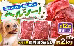 【全12回定期便】国内加工 ペット用 馬肉 切り落とし 約2kg(約1kg×2) / ペットフード ドッグフード 愛犬 馬肉 生食 加熱 ペット用 【五右衛門フーズ】 [BHCY060]