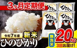 新米 令和7年産 無洗米 【3ヶ月定期便】 ひのひかり 20kg《11月から出荷開始》 熊本県産 無洗米 精米 氷川町 ひの 送料無料 ヒノヒカリ コメ 便利 ブランド米 お米 おこめ 熊本