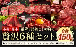 馬刺し 本場 熊本 霜降り馬刺しと赤身の贅沢6種セット 道の駅竜北《30日以内に出荷予定(土日祝除く)》 熊本県 氷川町 肉 馬肉 メン 大トロ 中トロ ヒレ シャトーブリアン ロース ユッケ 馬肉 赤身 ふじ馬刺し セット 食べ比べ st-p