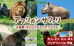 アフリカンサファリ入園券とオリジナルクリアファイルのセット(入園券大人2枚・小人4枚・クリアファイル6枚)チケット 動物園 サファリパーク形動物園 家族旅行 デート 観光【110601700】【九州アフリカ・ライオン・サファリ】