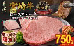 【C限定】宮崎牛ロースステーキ250g×3枚 計750g+粗挽きウインナー90g×2袋_23-N299-C-CF_(都城市) チョイス限定!! ロースステーキ 750g 宮崎牛 牛肉 宮崎県産 国産 ロース肉 ステーキ肉 高級感 とろける ミヤチク