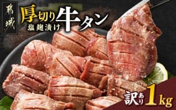 《訳あり》厚切り牛タン塩麹漬け1kg≪みやこんじょ特急便≫_14-3303-Q_(都城市) 訳あり 厚切り 牛タン 不揃い スリット加工 焼くだけ 焼肉 鉄板焼き BBQ 特急便