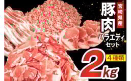 豚肉 詰め合わせ 宮崎県産豚肉 バラエティ セット 4種 2kg [南九フーズ 宮崎県 日向市 452061518] バラ 切り落とし しゃぶしゃぶ ロース スライス 豚こま 小間切れ ミンチ ひき肉