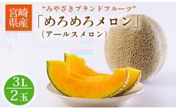 期間限定 宮崎県産マスクメロン「めろめろメロン」1箱(2L×2玉) 糖度14度以上 1玉1.7kg以上 みずみずしい果汁たっぷりのフルーツ[アールスメロン 産地直送 みずみずしい果汁 やわらかな果肉 ギフト 人気果物 贈答 プレゼント 贈り物 ワンストップオンライン] TF0661-P00055