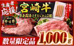 ※令和7年9月発送※宮崎牛 赤身・霜降りすきしゃぶ2種1kg+粗挽きウインナー【 すき焼き スキヤキ しゃぶしゃぶ スライス 肩ロース ウデ モモ 牛肉 牛 肉 A4ランク 4等級 A5ランク 5等級 ウインナー 焼肉 】