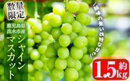 i214 ≪数量・期間限定≫ シャインマスカット (計1.5kg) 国産 鹿児島 出水市 ぶどう ブドウ 果物 くだもの フルーツ シャインマスカット 葡萄 旬 種なし 歯ごたえ 冷蔵 【山門ぶどう園】