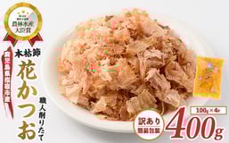 【訳あり・簡易包装】荒節 花かつお 100g×4袋(カネニニシ/A-330) 鰹節 かつお節 かつおぶし 特産品 いぶすき 鹿児島 鰹 加工品 だし みそ汁 魚介類 海鮮 特選 調味料 トッピング