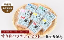 すり身バラエティセット 120g×計8P ( えび・甘鯛・あじ・いわし・とびうお・しいら ) (カワノすり身店/010-1984) 鹿児島 魚 魚介 すり身 さつま揚げ 練り物 食品添加物不使用 卵不使用 おかず 弁当 惣菜 小分け パック 詰合せ セット