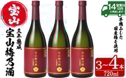 No.915/No.916 <本数選べる>宝山梅乃酒 三年熟成 720ml (3本/4本) 宝山 梅酒 酒 果実酒 アルコール 家飲み 宅飲み 梅 国産 熟成 鹿児島 薩摩 ギフト 贈答 常温 常温保存【西酒造】