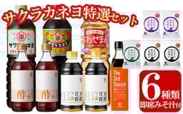サクラカネヨ特選セット!6種8本の万能調味料!5個のフリーズドライお味噌汁のセット!九州 鹿児島県産 濃口 甘露 甘め 甘口 の お醤油 等の調味料 と 時短 簡単 長期保存 の フリーズドライ お味噌汁 の セット!【A-1601H】