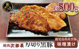 【鹿児島県産】焼肉次郎長 厚切り黒豚の味噌漬け 約800g 豚 お肉 黒豚 ロース 豚ロース 冷凍 特製 味噌ダレ バーベキュー BBQ ギフト おかず 南さつま市