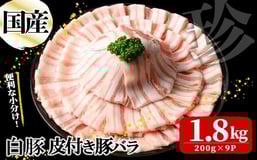 国産白豚皮付き豚バラ(200g×9P 計1.8kg) 国産 豚 豚肉 肉 白豚 バラ 豚バラ 皮 皮付き お鍋 しゃぶしゃぶ 冷しゃぶ 小分け 冷凍 珍味 炒め物 a5-335