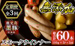 a878 《定期便全3回》鹿児島黒豚「短鼻豚」無添加スモークウインナー計60本(20本×3回)【鹿児島ますや】 姶良市 ウインナー ウィンナー 無添加 おつまみ 冷凍 黒豚 スモーク おかず