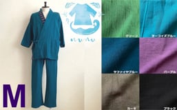 【nunu】琉球さむえ~前襟に読谷山花織柄~(サイズM) ☆ 沖縄県 読谷村 伝統工芸品 おしゃれ 綿麻 ユニセックス 半袖 七分袖 肌に優しい リラックス