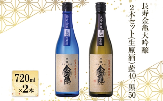 長寿金亀大吟醸2本セット(生原酒)藍40、黒50(720ml×2本)