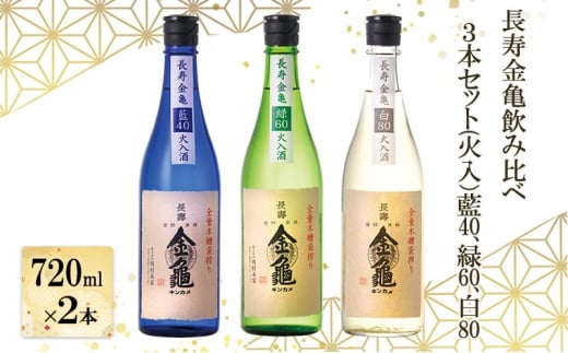長寿金亀飲み比べ3本セット(火入)藍40、緑60、白80(720ml×3本)