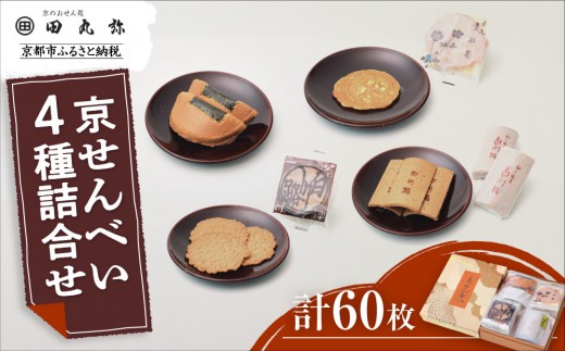 【京のおせん処田丸弥】京せんべい4種詰合せ(計60枚入)|京都 老舗 素朴なお...