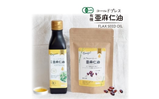 コールドプレス 有機亜麻仁油(アマニ油) 185g・カプセルになった亜麻仁油 60...