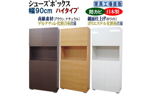 【全3色】高級素材仕様 シューズボックス 幅90 ハイタイプ