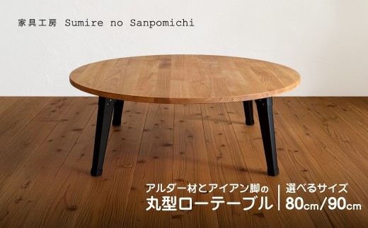 【2サイズ】アルダー材とアイアン脚の丸型ローテーブル(90cm/80cm) | 豊...
