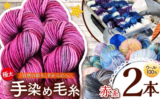 ウール100% 手染め毛糸(極太) 2本 赤系 | 毛糸 ウール ウール100% 手染...