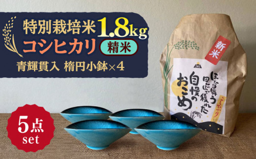 【令和7年産】 精米 コシヒカリ 特別栽培米 (1.8kg) + 【美濃焼】 青輝貫入...