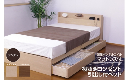【組立サービス付】361 シングルサイズ 棚照明コンセント引出付きベッド ...