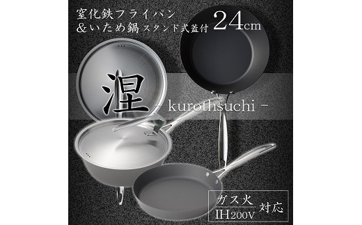 MB-2582 涅(くろつち) IH対応窒化鉄フライパン24cm & いため鍋24cm (スタン...