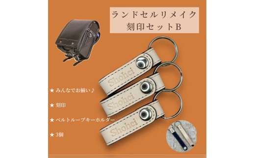 ランドセルリメイク【刻印キーホルダー 3点セット】(ベルトループキーホル...