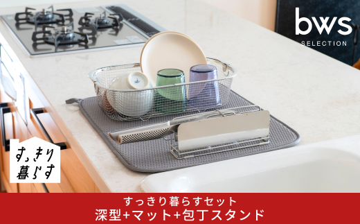 すっきり暮らすセット(深型+マット+包丁スタンド)水切りかご 水切りマット ...