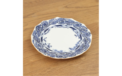 NEW【カネアオ】 有田焼 切子 23cm プレート 染付 松竹梅蛸唐草 1枚 宝泉窯