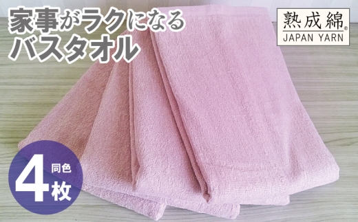 家事がラクになるバスタオル 4枚【スモーキーピンク 泉州タオル 高品質 綿100...