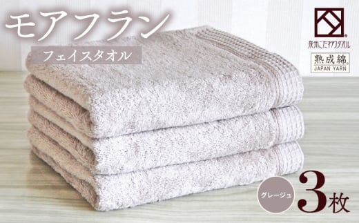 【スピード発送】泉州タオル「モアフラン」フェイスタオル 3枚 グレージュ