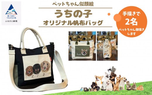 《ペットちゃん似顔絵》うちの子オリジナル帆布バッグ(手描き2名)