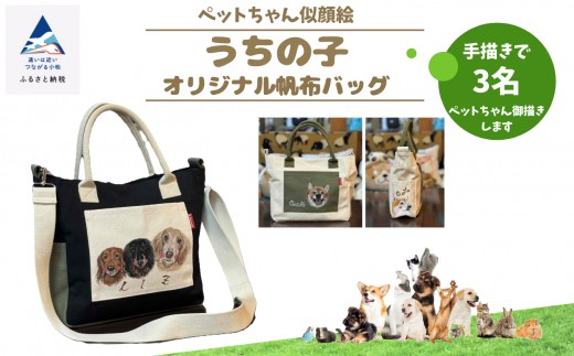 《ペットちゃん似顔絵》うちの子オリジナル帆布バッグ(手描き3名)