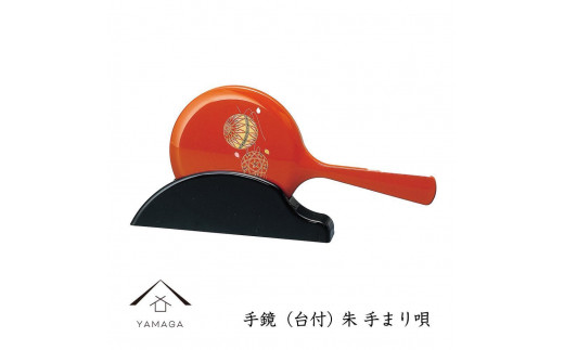 手鏡(台付) 朱 手まり唄 工芸品 漆器【YG185】