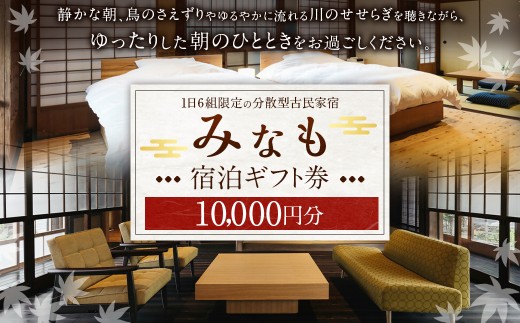 【ご宿泊割引券】分散型古民家宿『みなも』宿泊ギフト券 (10,000円分)