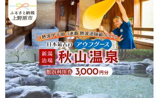 【天然温泉】 「秋山温泉」館内利用券3,000円分