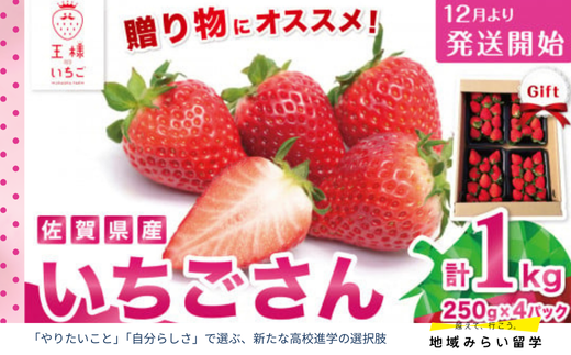 【先行予約|王様のいちご】佐賀県江北町産「いちごさん」1kg(250g×4パック...
