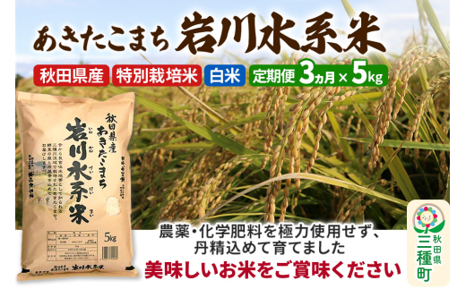 《定期便3ヶ月》 【白米】あきたこまち 岩川水系米 5kg(5kg×1袋)×3回 令和7...