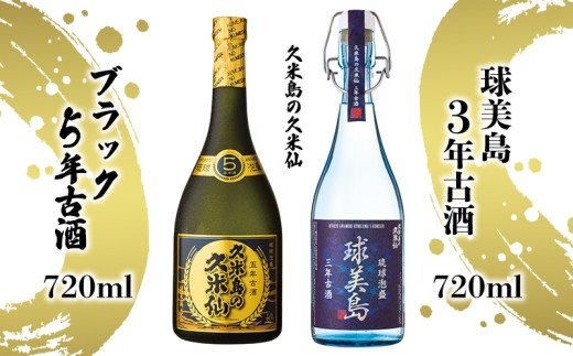 【久米島の久米仙】「球美島 3年古酒 720ml」「ブラック5年古酒 720ml」 泡盛...