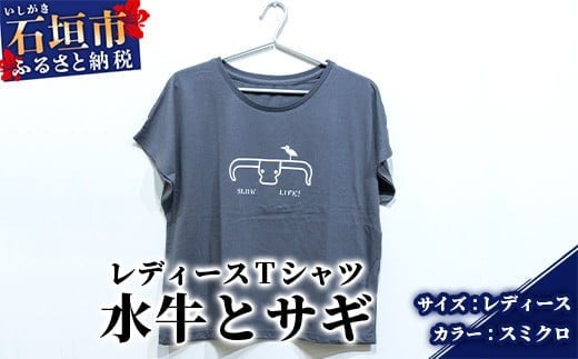 【レディース】オリジナルTシャツ 水牛&サギ レディースTシャツ【カラー:スミ...
