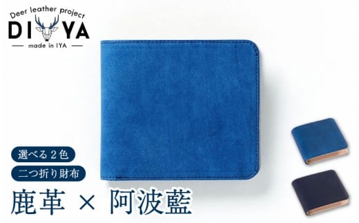 NEW財布 藍染 国産 鹿革 紺色 水色 手作り 二つ折り財布 ウォレット カード ポケ...