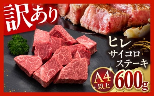 【年内発送】【訳あり】A4,5等級 博多和牛ヒレサイコロステーキ 600g 桂川...