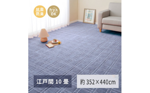 日本製 平織カーペット 江戸間8畳 約352×352cm ブルー 1枚 600098380|抗菌 ...